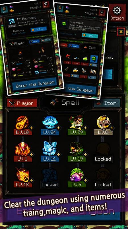 1、游戏提供流浪武士杰克和魔术师玫瑰两个可操作角色,携手进行地牢探险。