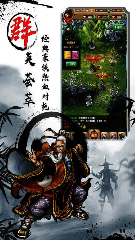 游戏运用金庸、古龙、温瑞安武侠作品中的经典角色,引领玩家走进扑朔迷离的故事背景。这里有恢弘的正邪对决、激烈的势力战,权力与利益、武学与梦想、生死与爱情等世人难以逃脱的欲望交织其中。