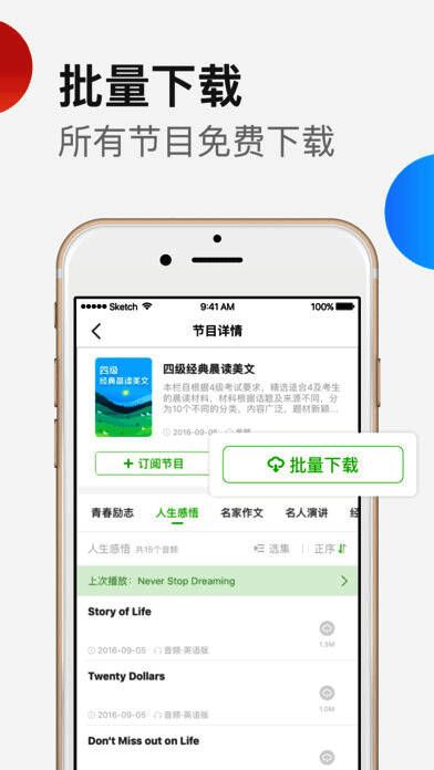 支持离线收听,节省流量,还能高速批量下载,方便你随时随地学英语;