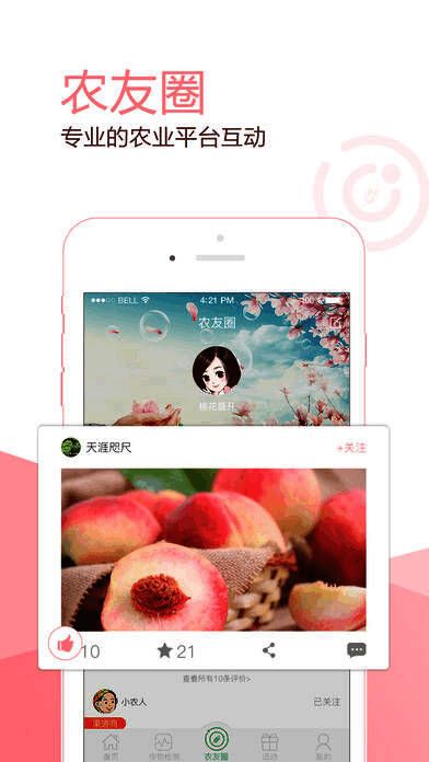 【农友圈】为农业爱好者搭建互动沟通平台,可展示田地、发布买卖需求、结交朋友。