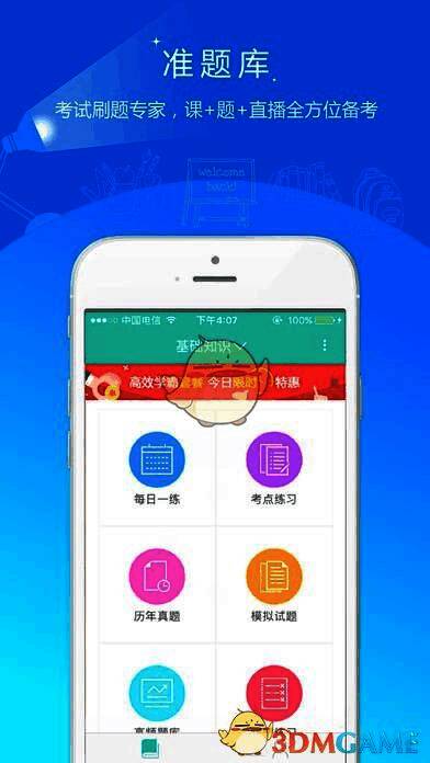 3、是一款高效的备考软件,提供海量试题及精讲课程,让考生能充分利用碎片化时间在线学习。