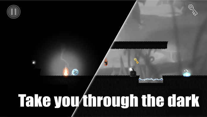开灯!这下知道怎么走了,关灯!……诶,没走错啊,钥匙到底在哪呢!真希望能拿石头压住开关,可惜不行。玩家只能按住开关,记住钥匙位置,然后摸黑探索,小心各种危险机关,找到钥匙后跑向发光点就能过关。游戏画面不错,虽然黑灯瞎火看不清,但光效还可以。