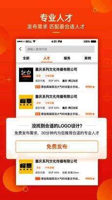 用户可免费发布任何需求,App内汇聚全球1000万创意服务人才为您服务: