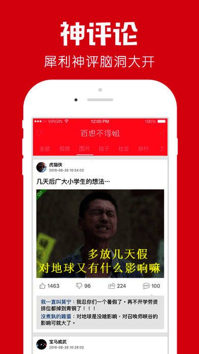 嘻嘻~要是你想看内涵、有趣的内容,就来百思不得姐,不会让你失望而归!