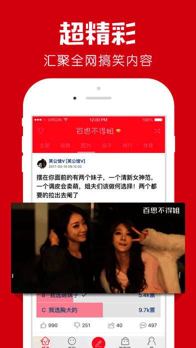 有内涵的段子、搞笑的图片、趣味十足的笑话,这些精彩内容尽在《百思不得姐》!这里汇聚了海量搞笑有趣的视频段子,每天来此,能让你放松心灵,为生活增添更多乐趣,开心过好每一天,赶快下载吧!