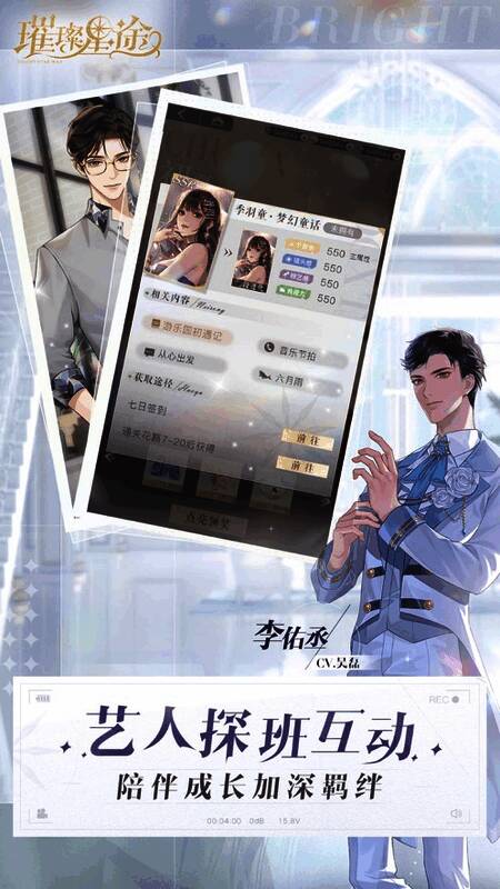 画面设计十分精美,你可以按自己的喜好培养明星。简单的手指点击操作,能让玩家轻松享受独特的情节体验,且每个角色都有自己的动态,感受真实的偶像生活。