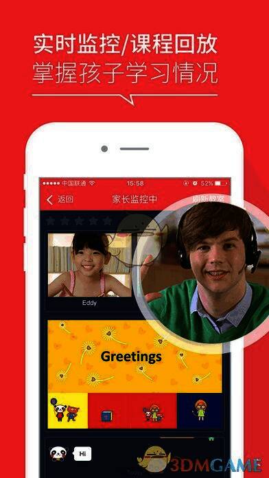 【实时监看上课实况】:哒哒英语的透明教室,可让家长了解孩子的上课情况,通过移动终端实时监看上课进展。