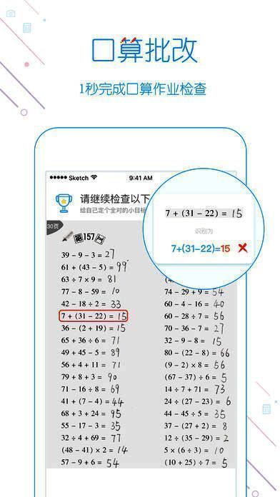 1. 拍照上传小学口算作业,瞬间知晓错题,专为小学生家长和数学老师设计,节省90%时间。
