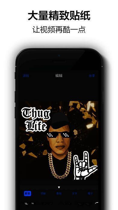 - 拥有大量精选Thug Life贴纸,像墨镜、项链、香烟、文字、帽子等一应俱全