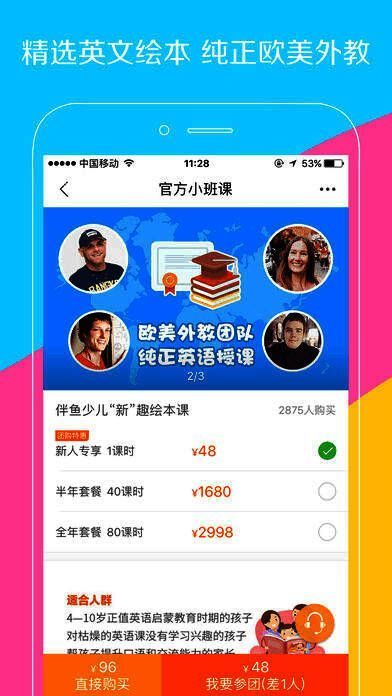 拥有国际领先的教学资源,搭配伴鱼的私人订制服务,能让孩子收获满满的成就感。平台聘请了获得国际认证的欧美外教以及优秀中教,他们经验丰富、热情满满且善于与孩子互动。精心规划的课程体系,为孩子量身制定了合理的成长路径。老师会及时提供课下辅导,上课的回放还能随时进行复习。老师态度更热情,服务也更具个性化,价格仅为线下机构的三分之一!