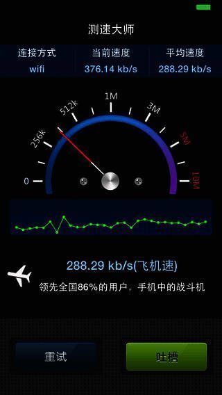 《测速大师》app是集网络测速、网络情况跟踪和专业网络测试于一体的专业测速软件。有了它,不用再为测手机网速、宽带速度发愁。它完美支持电信测速、Wi - Fi测速以及2G、3G、4G网络检测,一键测试,30秒内就能得到准确测网速结果,是随时随地的测速专家。