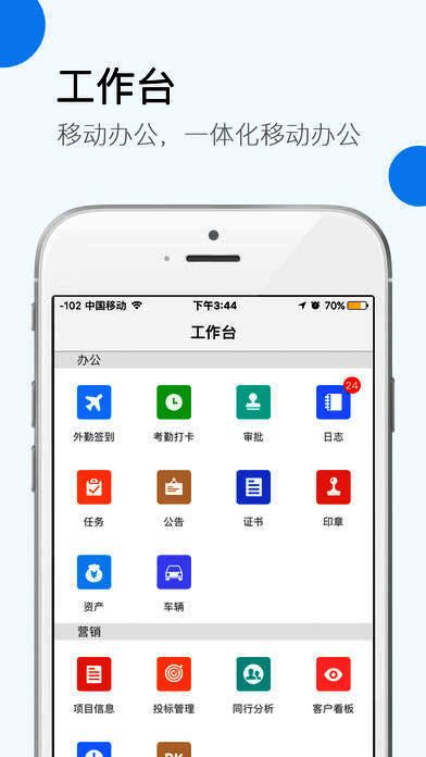 【业主监督】可随时监督施工项目的综合状况;【办公OA】能进行公司考勤、审批、任务下发;【营销管理】可实时跟踪招投标情况;【项目管理】能随时查看项目资料,一键完成点工劳务考勤;【采购管理】可进行项目采购和物资调拨;【资源管理】支持公司车辆、证照、印章在线借出;【统计分析】可实时统计项目经营数据。