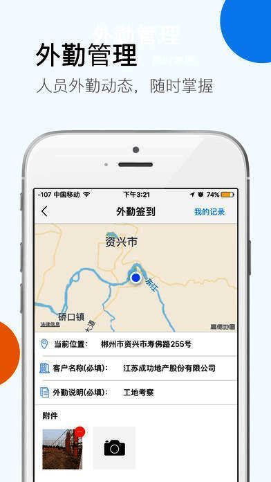 1、外勤签到包含当前位置、当前时间、客服名称、外勤说明等选项。2、“我的”包含我的企业、新手帮助、设置、意见反馈、客服、推荐筑库等选项。3、“应用”包含营销管理、项目管理、采购管理、资源管理、统计分析等选项,可查看我的审批、我的任务、我的日志等相关信息。4、“办公”包含考勤管理、任务管理、审批管理、日报管理等选项。