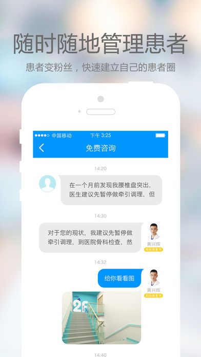 4、病患预约订单实时更新,就诊记录和病例管理便捷。用户可通过二维码扫描关注医生,提升医生个人知名度。