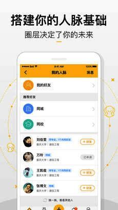 可在专业圈子交流,分享技能干货;搭建人脉基础;提供海量订单以赚取首桶金;系统记录进步;提供海量服务让校园生活更便利。