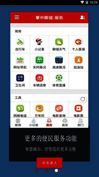 3、服务:系统将服务划分为便民与工具两大类。