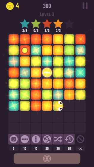 5、当贪吃蛇快占满所有格子却没有合适弹珠时,可点击商店按钮,消耗金币使用特殊功能求助。