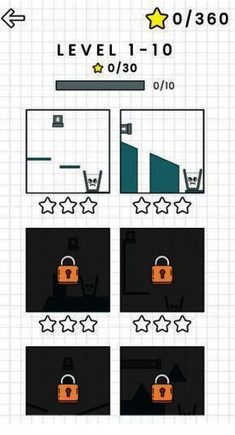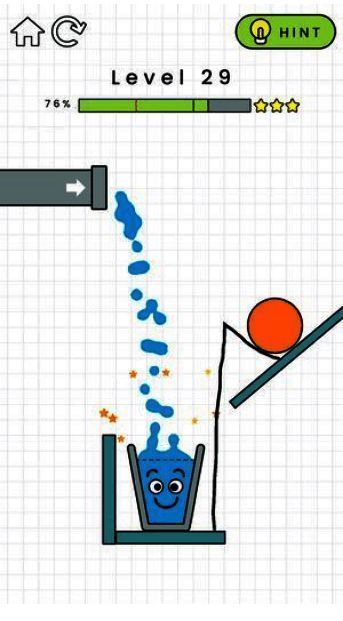 游戏中,玩家要采用不同方式和路径完成有难度的挑战。通过画线,结合物理下落原理,成功把水倒进杯中,让杯子重现微笑就算通关。
