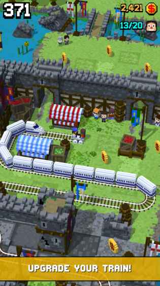 驾驶火车在地图上前进,后方有可怕车辆追击,需铺设轨道保证顺利前行,避免走进死路,前进时尽量收集金币,最好利用乘客上车时间甩开火车。