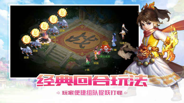 2、经典回合玩法,方便玩家组队捉妖打怪;