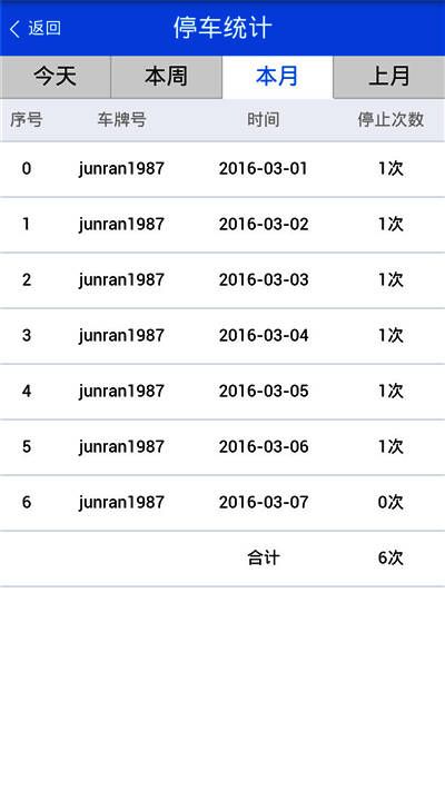 3、报表统计:呈现一段时间内的里程统计图、轨迹明细和报警明细等内容。