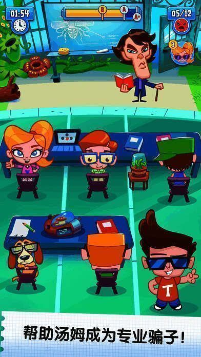 《骗子汤姆3》苹果版是一款趣味十足的奇葩休闲游戏。玩家将化身骗子汤姆,在天才学校开启行骗之旅,从邪恶老师手中解救学生,探索神秘校园,同时要小心不被抓住。汤姆因骗人技术高超被天才学校邀请,而学校教员竟用吸脑机吸干学生大脑以控制世界,玩家要助汤姆避免脑子被吸干并顺利毕业。