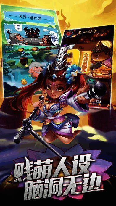 它是角色扮演与策略卡牌完美结合的无厘头游戏,各方势力登场,爆笑剧情、贱萌人设、超污合体技,不拼数值拼脑洞,开启跨三国、西游、封神榜的大冒险。