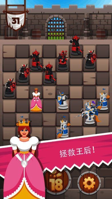 《骑士拯救女王》是一款独具特色的国际象棋残局破解类推理解谜游戏。它和正规残局破解有别,游戏里的残局十分离奇,在正常国际象棋中不会出现,且目的并非歼灭敌人,而是救出女王。