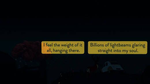 这是一款单人叙事选择类游戏。从白天过渡到夜晚,玩家能体验与各种生物互动的安静瞬间,感受大自然的磅礴与奇妙,身边会不断发生新奇之事。通过和不同伙伴交谈,玩家会揭开一切的起源,明白自己为何身处悬崖边,进而思考与世界的关系、生存与死亡等问题,前提是还能看到明天的太阳。