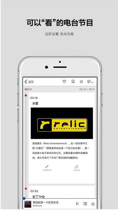 3、电台随身看:听节目时能同步查看节目里提到的重要事件。