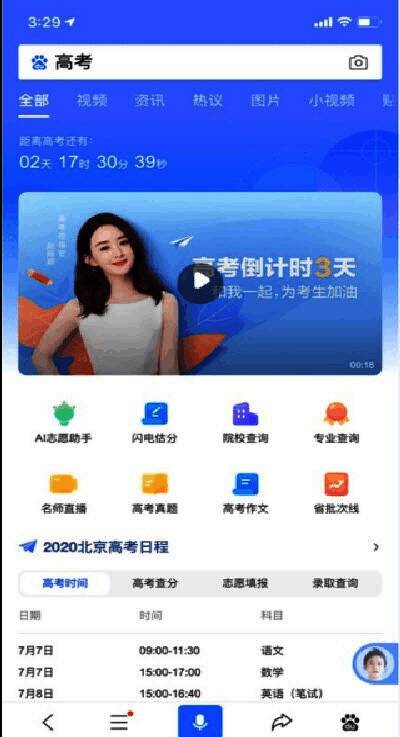 除了使用《高考闪电估分》软件估分外,高考结束后,考生还能通过在百度App搜索“高考”,使用院校查询、专业查询、高考查分、AI志愿助手、高考直播、高考搜索大数据等高考相关工具和服务。其中,AI志愿助手工具可依据考生所在省份招考政策、个人成绩和选科情况,智能分析历年招生计划、往年录取分数、同水平考生往年报考情况等,结合考生分数信息和实时搜索大数据,帮助考生更科学合理地填报志愿,为考生择校、选专业提供参考。