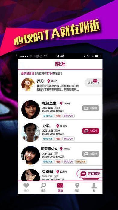 独自度过的夜晚总是孤寂难耐,想玩耍时却找不到人陪伴。而在这里,这些问题都能迎刃而解。这是一款靠谱真实的快速交友神器——相亲神器,让你在有需求的夜晚有人相伴,不再孤单。即便平时交际圈小、工作繁忙也无妨,网上也能寻觅对象,无需房车,只要真心。相亲神器会员众多,资料真实,若喜欢对方,即可查看电话,马上见面开启共同生活。