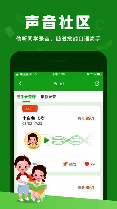趣配音:在大卫熊英语软件中,可与著名外教一对一模仿和阅读。