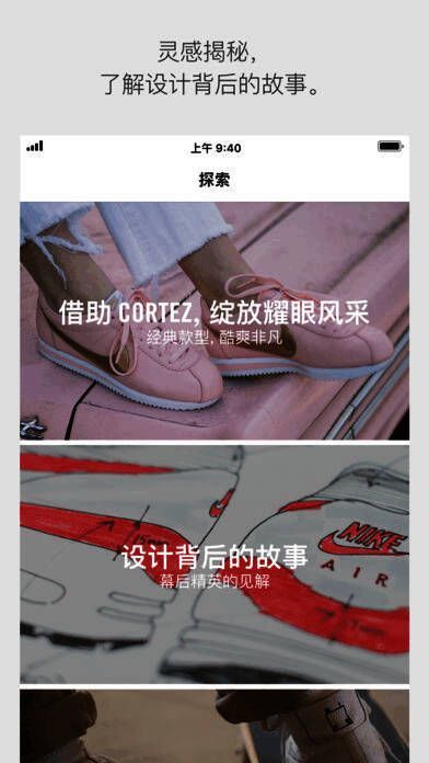 独家故事:会对精选鞋款的设计灵感、优势性能及传承故事进行全方位解读,还能阅读更多鞋款设计师带来的独家内容。