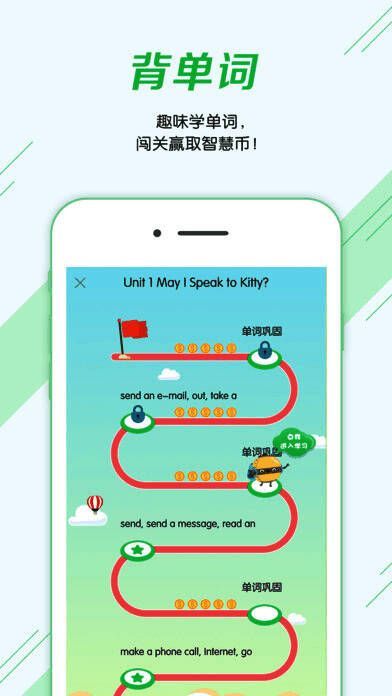 背单词:对单词的音、形、意进行分解练习,加速记忆;通过单词测评巩固和提升学习效果。