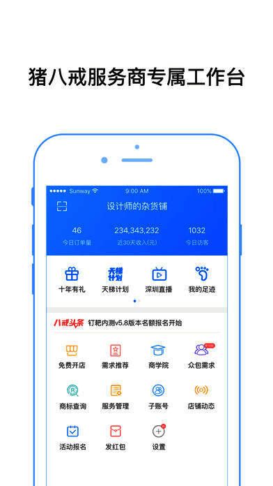 钉耙(曾用名抢单宝)是专门为猪八戒网服务商打造的移动工作平台。此次钉耙APP进行了全面改版和升级,不仅方便服务商接单和进行交易管理,还配备了数据展示工具,便于服务商实时掌握流量、订单以及成交金额的变化情况,助力服务商开展更多服务管理和店铺运营工作。赶快下载APP体验新功能,开启赚钱之旅吧!