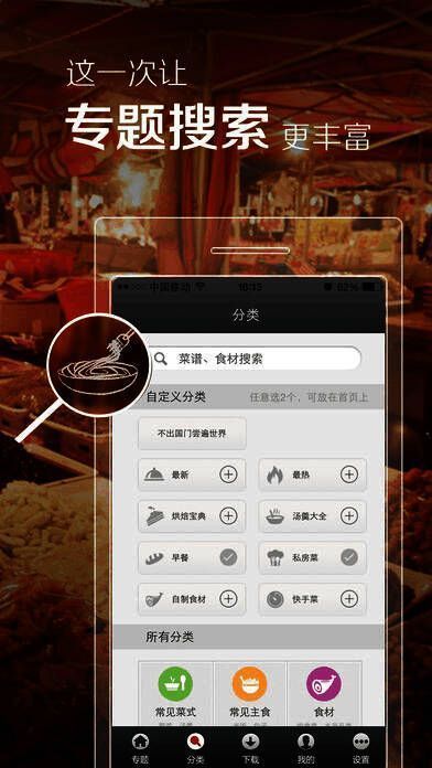 1、能把10万道菜谱装进口袋。它拥有全球最大美食媒体“美食天下”的独家内容,堪称菜谱中的百科全书,你可以搜索上千种食材,还能在掌上了解东西饮食文化。