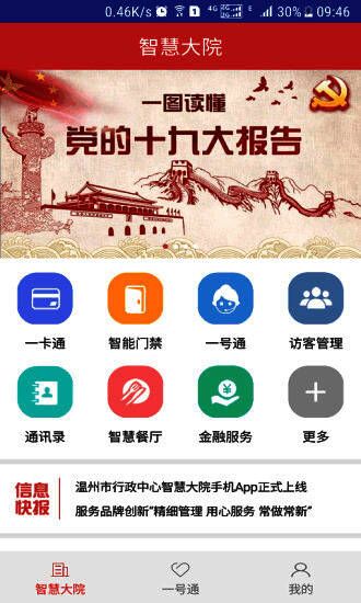 智慧大院 APP 的上线,是市机关事务管理局与农行温州分行深度合作的结晶。历经三年的不懈努力,先后建成了智能一卡通系统、房产管理系统、阳光厨房系统、智慧节能系统、智慧消防系统、智慧餐厅系统等十多个子项目,为后勤服务、保障和管理融入了“智慧元素”。该 APP 还是同类项目中唯一通过安全等级保护测评认证的软件系统,推广后能让更多企事业单位享受便捷的通勤办公服务。