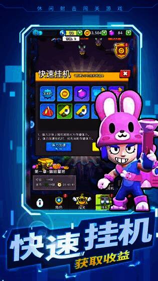 暴走特工,即刻开启热血团战!《暴走特工》是一款以可爱特工为主角的射击闯关冒险游戏。在游戏里,通过闯关打怪的射击玩法,你能快速升级,不断训练英雄以提升战力。战斗中,灵活走位可闪避敌人攻击,全自动射击是核心玩法,甚至挂机也能有收益,玩法轻松休闲乐趣多。