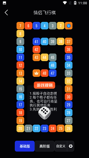 玩家能和爱人一起玩这款游戏,感受情侣间的默契配合。游戏里,玩家需掷骰子并按点数移动棋子,碰到不同格子会触发不同事件,像前进、后退、暂停、复活等,玩家要依据具体情况进行相应操作,率先将棋子移到终点者获胜。