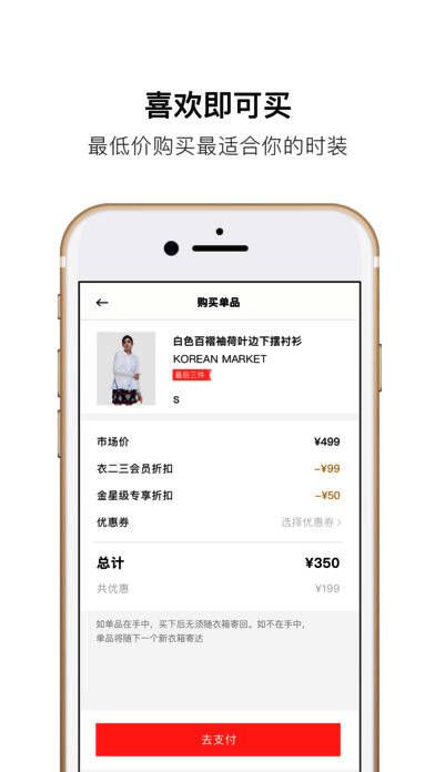 2、每次选3件,一个月内可不限次数换穿,要是遇到喜欢的衣服,还能用超值折扣买下来。