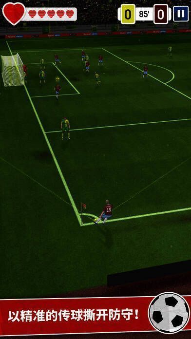 游戏操作简单,玩家通过滑动屏幕来传球或射门。需在游戏屏幕左上方的生命槽耗尽前将球踢进网,虽然尝试机会较多,但想三星通关关卡难度较大。
