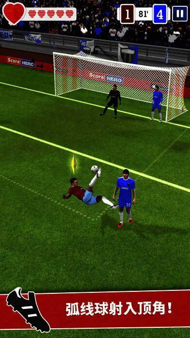 3、游戏设有生命槽,玩家要在生命槽耗尽前将球踢进网。