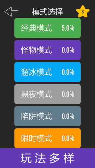 包含经典模式、怪物模式、溜冰模式、黑夜模式、陷阱模式、限时模式。