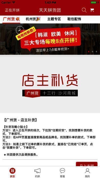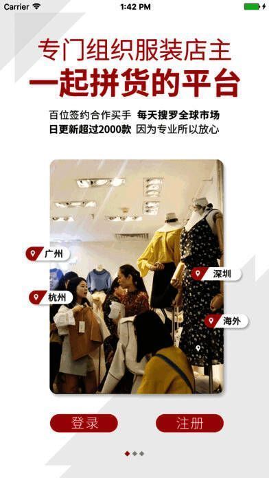 1. 是一款方便实体服装零售店主拿货拼货的 app,也是国内规模较大的实体店拼货社群,每天 8 点准时开团拼货。