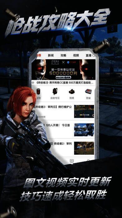 《终结者2助手》这款游戏辅助应用程序,不仅有优质的游戏攻略,还汇聚了众多游戏大神。玩家能借此享受绝佳游戏体验,实时领取游戏福利,查看大神们的游戏心得。它是网易游戏为《终结者2:审判日》打造的官方辅助APP盒子,为玩家提供全面的游戏资讯、视频、攻略等,还有社交功能助你找开黑队友夺冠。