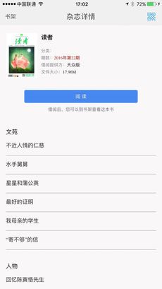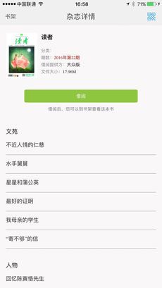 它是龙源集团推出的移动阅读应用,用户扫码免费下载书刊借阅机提供的众多精品杂志和优质图书,书库内容丰富,能满足日常阅读需求。