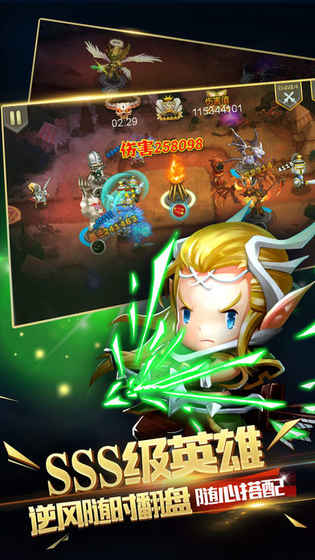 以西方魔幻色彩为题材,Q版英雄可爱激萌的形象降临危机四伏的繁华大陆。祭司、精灵射手、独角兽等各类英雄各司其职,天赋技能各有所长。找到最佳火力集中区,集攻防于一体,层层进阶,将伤害输出最大化,谱写属于你的魔幻史诗。