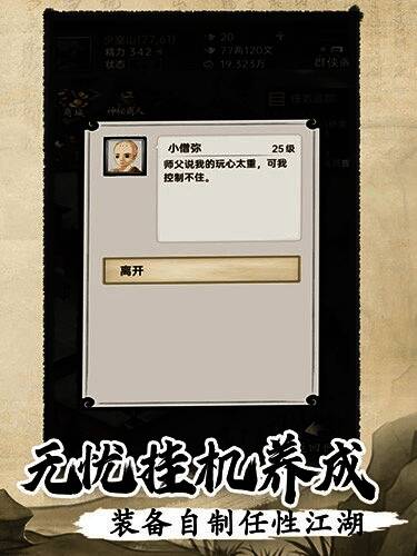 个性侠客养成:没错!你就是主角!游戏提供个性化选择来决定主角属性,是成为贤明豁达的一代大侠,还是阴狠决绝的绝世枭雄,全由你掌控。