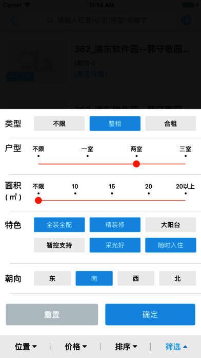 支持通过关键词、GPS、地图等方式搜索房源,可在线预约看房,也能电话联系管家看房。